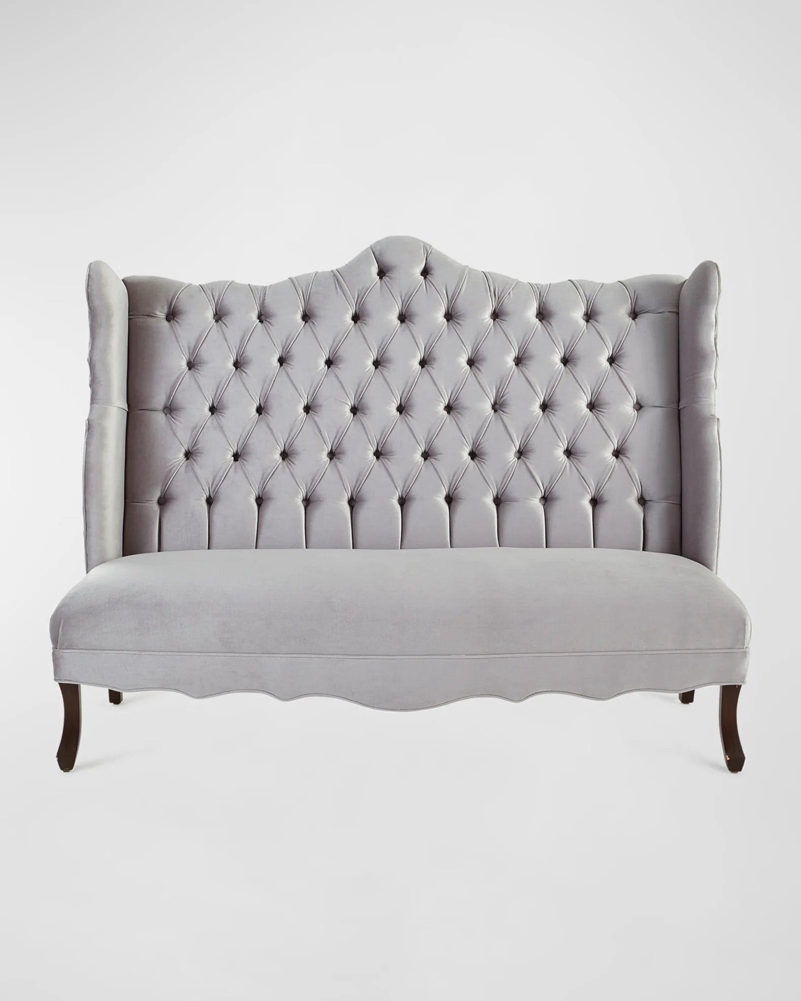Handcrafted velvet dining banquette.